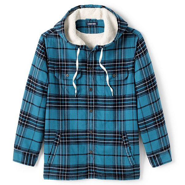 Men S Lands End Plaid Flannel Sherpa Lined Hooded Shirt Jacket
